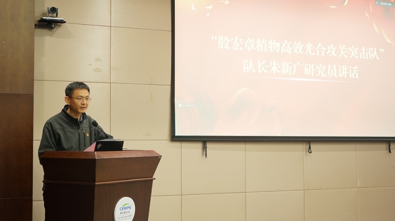 “殷宏章植物高效光合攻关突击队”队长朱新广研究员讲话