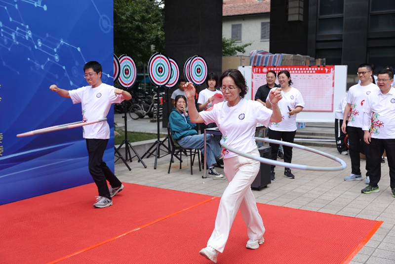 此次运动会包含三个比赛环节,分别为跳长绳、趣味接力和飞镖比赛,均是集体参赛项目。为了让参赛人员更了解趣味接力的运动项目,中心领导、党委委员、工会委员和研究员代表在赛前进行了现场示范。