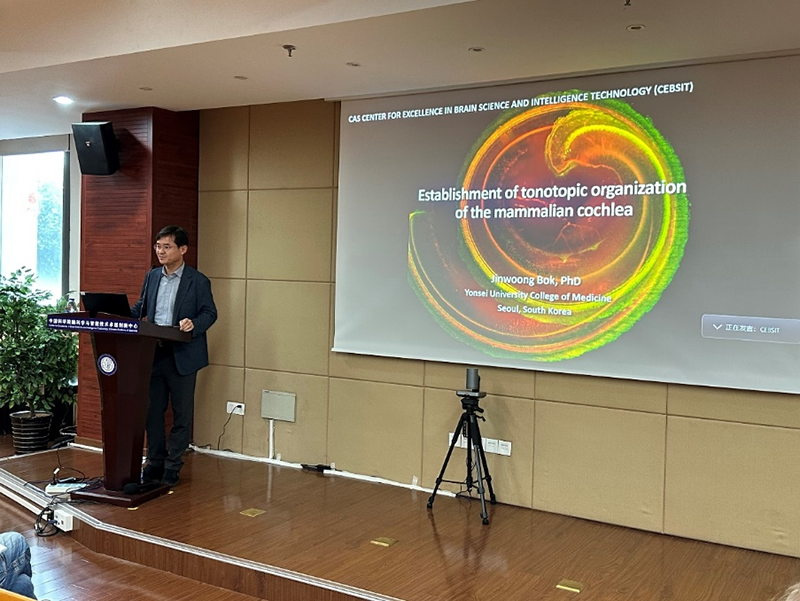 9月25日,脑智前沿论坛 听觉系统发育与功能研讨会在中国科学院脑科学与智能技术卓越创新中心举行。本次研讨会邀请了韩国延世大学Jinwoong Bok教授、美国弗吉尼亚大学Xiaowei Lu教授、美国霍普金斯大学Uli Mueller教授和英国谢菲尔德大学Walter Marcotti教授做特邀学术报告。脑智卓越中心刘志勇研究员主持了本次研讨会。
