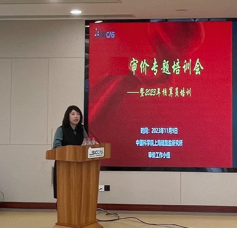 11月9日,中国科学院上海硅酸盐研究所举办审价专题培训暨2023年度财务核算员培训会。此次培训会由审价工作小组牵头,财务处、人力资源处共同组织,邀请了装备价格专家董勇作报告。上海硅酸盐所总经济师王喜晴,审价工作小组组长、质量处处长夏天然,财务处处长蒋晓婷、资产管理处处长孙兴伟、高技术处副处长张敬超出席,来自中国科学院上海硅酸盐研究所、上海微系统与信息技术研究所、上海光学精密机械研究所、上海有机化学研究所、上海高等研究院、上海应用物理研究所、微小卫星创新研究院、上海分子细胞科学卓越创新中心,上海会计学会科技分会的科研和管理人员共100余人参加了此次培训。培训会由蒋晓婷主持。