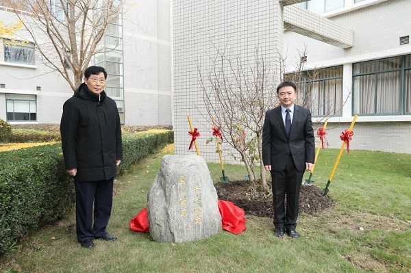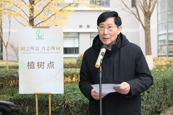 会前,药物所于祖冲之路园区举办“报国梅”种植活动,所纪委书记黄智静主持活动。陈凯先院士在致辞中表达了对蒋华良院士的思念。他表示,腊梅象征着高尚的品格,正如蒋华良院士的精神。他希望这株腊梅深深扎根在药物所的土地上,不断茁壮成长,激励和见证药物所人铭记蒋华良院士“国之所需、吾志所向”的坚定志向,弘扬传承他无怨无悔、兢兢业业的奉献精神,接续完成他未竟的新药梦想。随后,陈凯先院士、所长李佳为“国之所需,吾志所向”纪念石揭幕,并与党委书记、副所长叶阳,学术所长耿美玉,郑明月研究员和蒋雨惜一同种下报国梅。