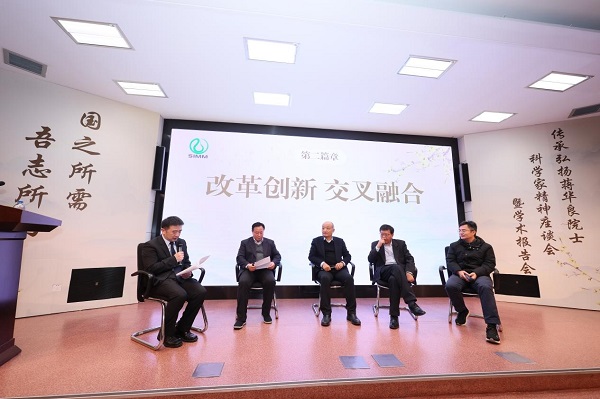 座谈发言环节由李佳和柳红研究员分别主持。在“学有所成,立志于世”篇章,原常州化工研究所课题组长王庆国、郭子建院士、钱旭红院士、陈凯先院士分别回溯了蒋华良院士的成长、求学经历,以生动感人的故事讲述蒋华良院士“以个人前途为奋斗目标发展到自觉以国家前途为奋斗目标的转变过程”;在“改革创新,交叉融合”篇章,吴云东院士、钱旭红院士、俞飚院士、宋瑞霖会长先后讲述了蒋华良院士在促进改革创新、推动学科发展,努力促进政产学研用资的协同发展方面所做出的贡献;在“心怀家国,躬耕良药”篇章,武汉病毒所党委书记肖庚富、华中科技大学附属同济医院主任医师汪道文、复旦大学附属华山医院感染科主任张文宏、新疆理化所党委书记孙正文、君实生物CEO李宁、药物所研究员沈敬山先后回忆了蒋华良院士在新冠疫情爆发后,临危不惧,奋勇向前,积极开展抗病毒药物研发的感人故事;在“树才育人,源远流长”篇章,临港实验室副主任李洪林、华东理工大学副校长李剑、上海科技大学副校长江舸、药物所副所长赵强分别讲述了蒋华良院士作为一位教育工作者,奖掖后学、诲人不倦的故事。另有10余位不能来到现场的两院院士、高等院校和相关单位的领导通过视频和文字分享了和蒋华良院士相处的点滴故事及怀念之情。