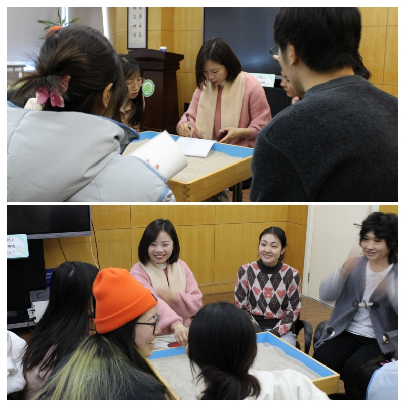 在“沙盘游戏坊”中,同学们在安全受保护的空间里,通过摆弄沙盘模具,重新审视内心世界。他们与无意识接触,面对内心的冲突与矛盾,进行深度思考,释放积累已久的压力,优化自我意识,从而发现更加真实的自我。
