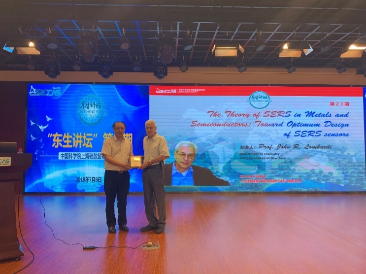 7月9日上午,中国科学院上海硅酸盐研究所在嘉定园区G楼3楼报告厅举办了第二十三期“东生讲坛”,邀请美国纽约城市大学化学学院John R. Lombardi教授作为主讲嘉宾,为上海硅酸盐所近200名科研人员和研究生作了题为“The Theory of SERS in Metals and Semiconductors: Toward Optimum Design of SERS sensors”的学术报告。上海硅酸盐所所长宋力昕,党委副书记、纪委书记杨建华,吉林大学赵冰教授等出席讲坛,讲坛由杨建华主持。杨建华代表上海硅酸盐所向Lombardi教授表示热烈欢迎和诚挚感谢,并简要介绍了讲坛设立的相关背景。