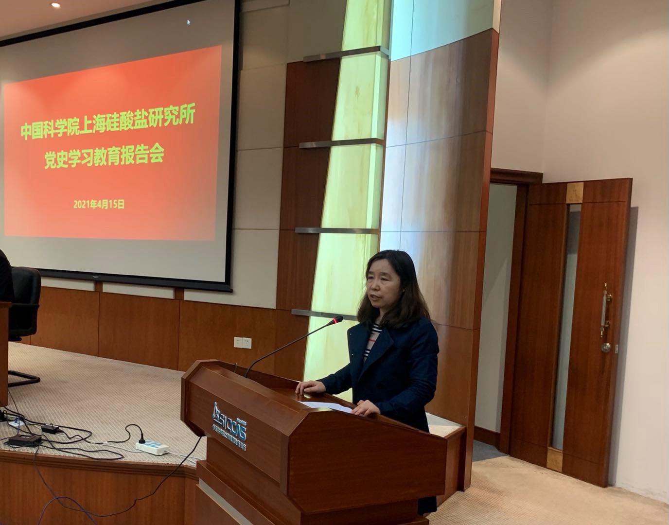 4月15日上午,中国科学院上海硅酸盐研究所举行党史学习教育第二次专题报告会,邀请中共上海市委讲师团党史学习专家宣讲团成员、华东师范大学紫江特聘教授宋进作题为《中国共产党百年历史的回顾和思考》的专题辅导报告。离退休党总支、研究生党员及在职党员参加学习,会议由所党委委员、科技发展部部长闫继娜主持。