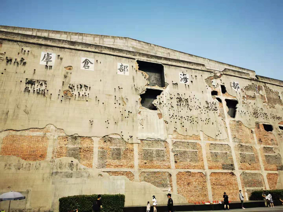 四行仓库外满布弹孔的墙壁诉说着那场激烈的战斗