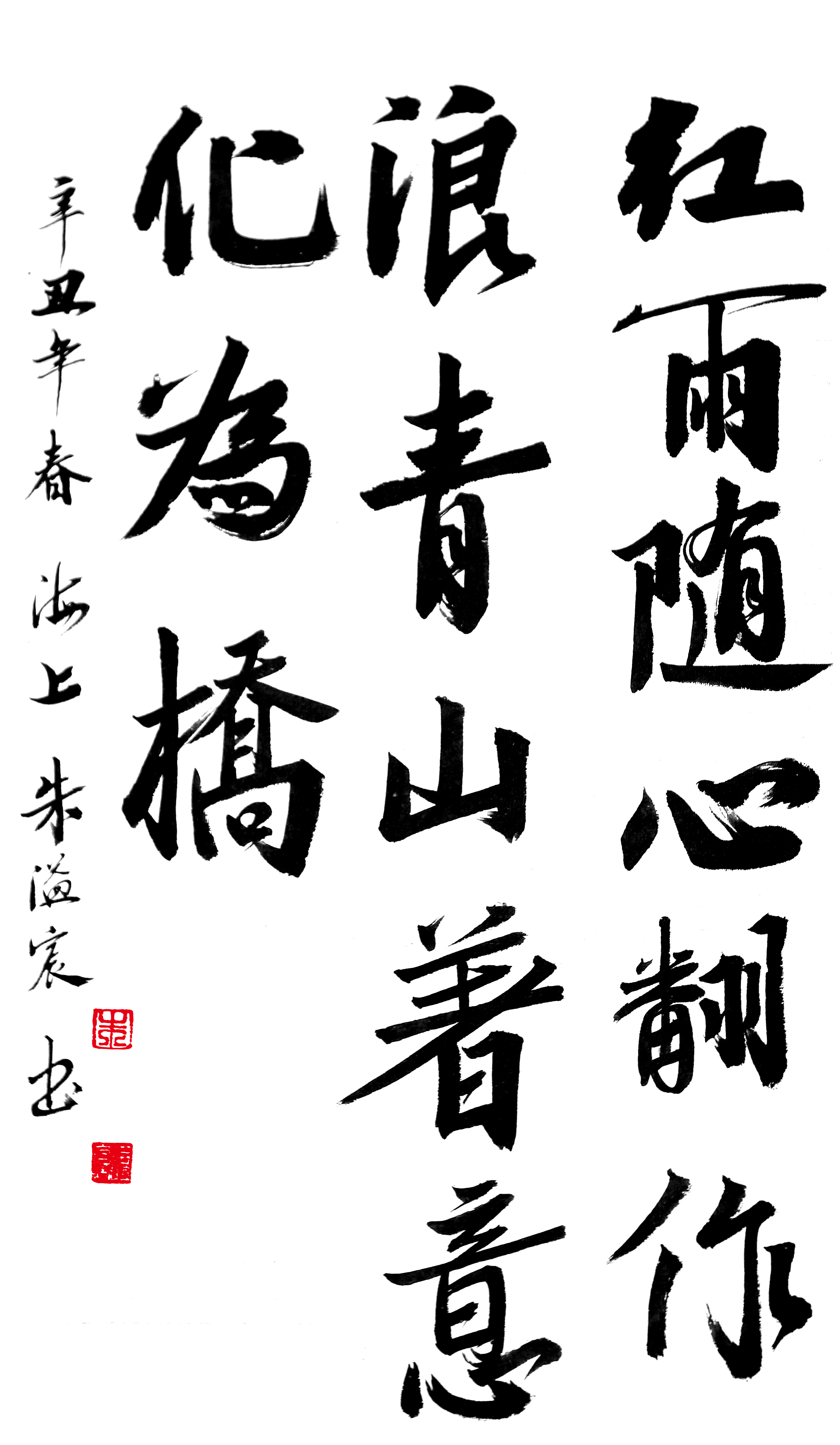 《红雨随心翻作浪,青山着意化为桥》