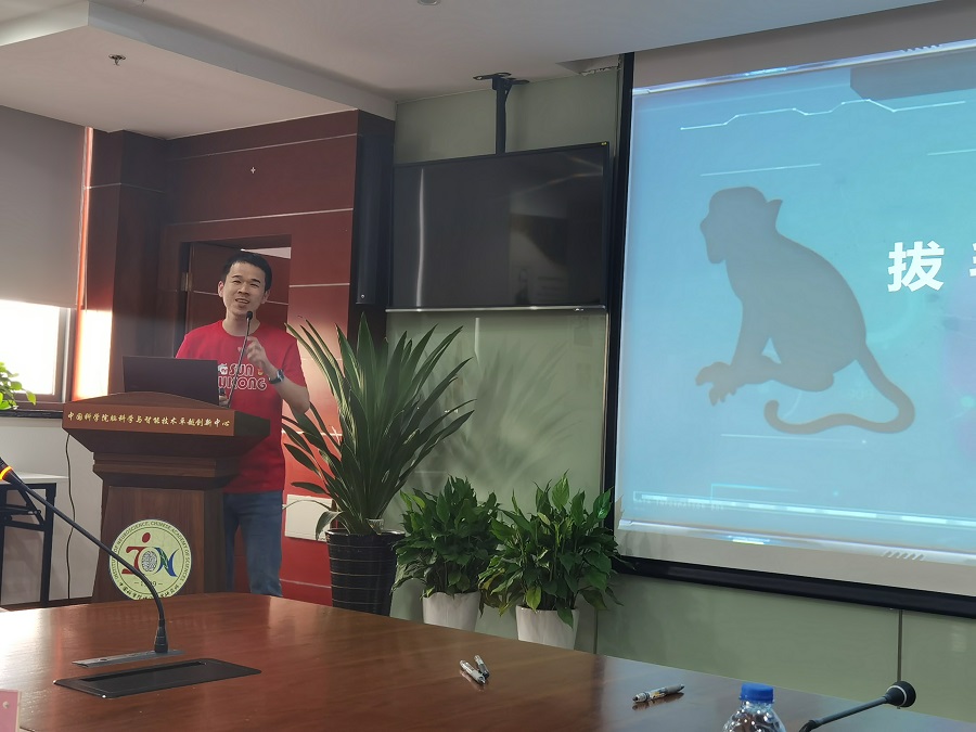之后,支部党员潘李念为大家作了题为“拔毛变猴、实践报国”的主题党课分享,讲述了中国科学家成功突破了现有技术无法克隆灵长类动物的世界难题,成功克隆出了世界上首个体细胞克隆猴的故事,克隆猴科研团队在重大问题攻克过程中迎难而上、不断攻克科学难题的精神令与会同志倍感振奋。