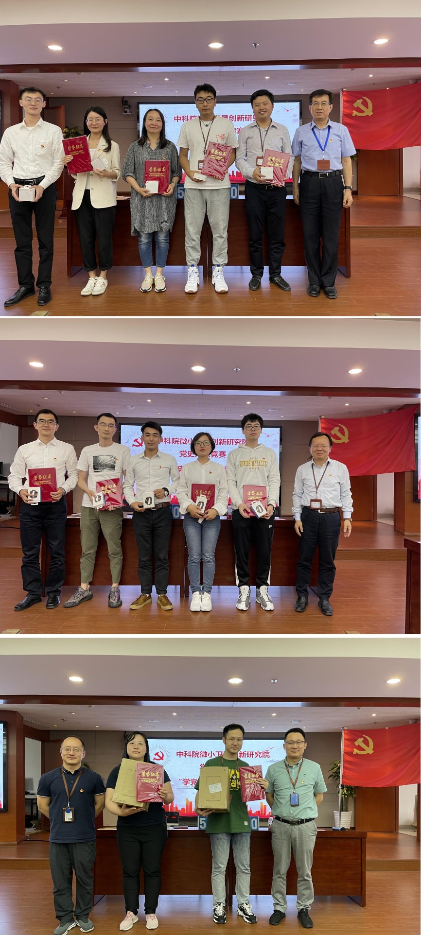 经过紧张刺激的预赛及决赛,最终“创新潜龙队”获的党史知识竞赛一等奖、“闪闪红星队”获二等奖,“承志铸星队”和“新星小队”获三等奖。分别由朱振才书记、周四根书记、党委委员胡海鹰、党委委员陈宏宇为一、二、三等奖颁奖。