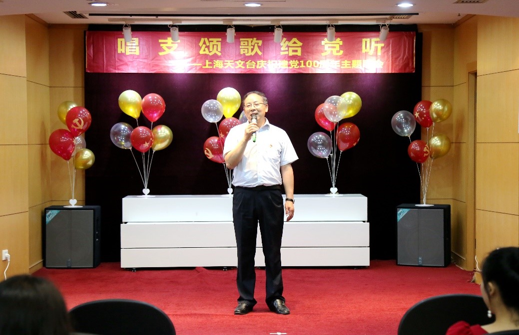 为隆重庆祝中国共产党成立100周年,紧密围绕“学党史 强信念 跟党走”学习教育主题,回顾建党百年光辉历程,唱响新时代主旋律,进一步增强党组织的凝聚力和战斗力,弘扬党的光荣传统,抒发广大党员群众的爱党爱国情怀,2021年6月18日,上海天文台举办“唱支颂歌给党听”——庆祝中国共产党成立100周年主题歌会。
