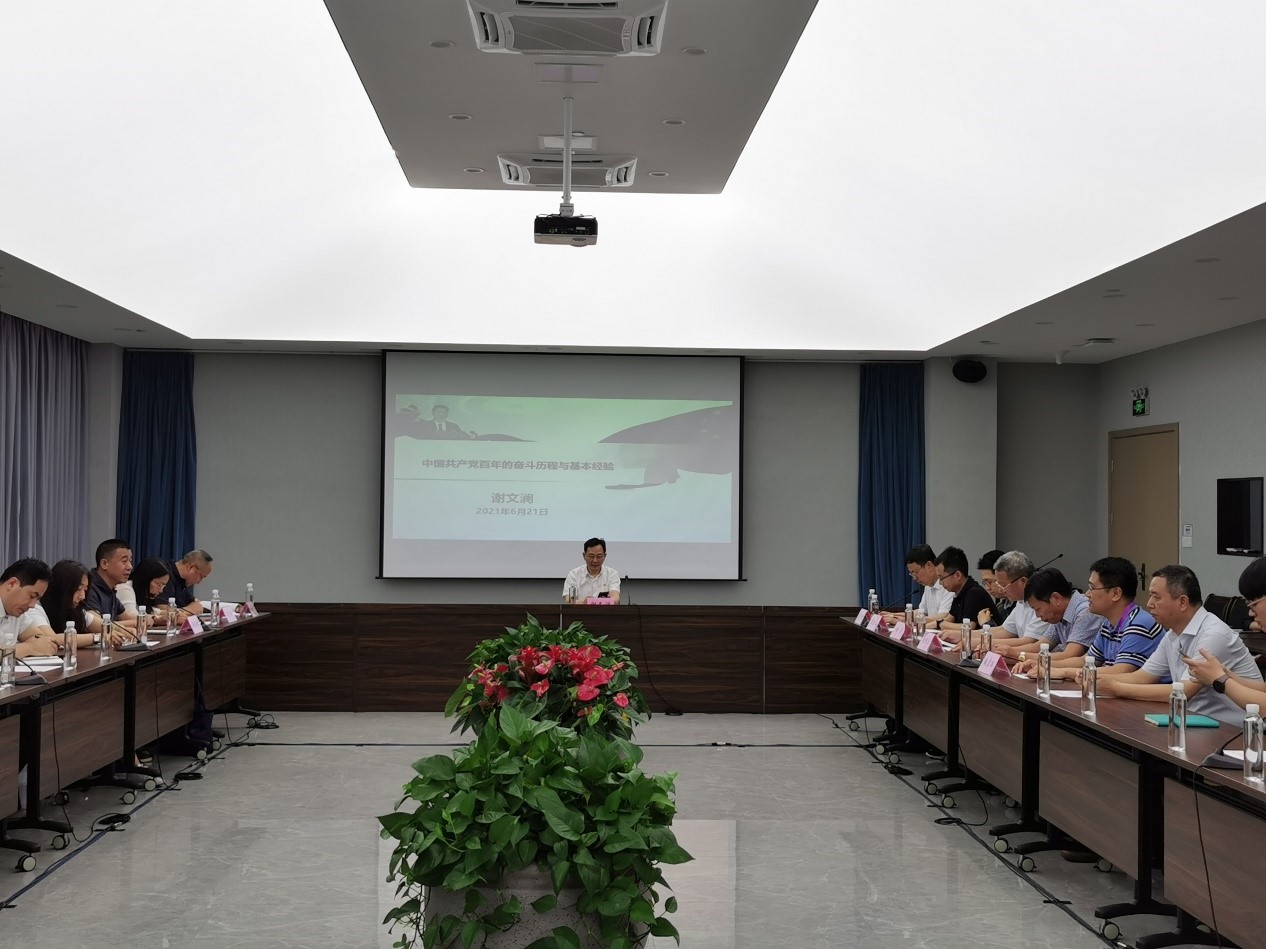 谢文澜作“中国共产党百年奋斗历程启示”的党课报告,他从学习党史的教育意义和背景、全面了解共产党百年光辉历程和历史性成就以及基本经验与启示等三方面做了深入阐述。他谈到,在新的历史时期,要将习近平新时代中国特色社会主义思想融入到实际工作中去,理论指导实践,树牢“四个意识”,坚定“四个自信”,坚决做到“两个维护”,勇于担当作为,进一步加强党的政治建设,传承自我革命精神。