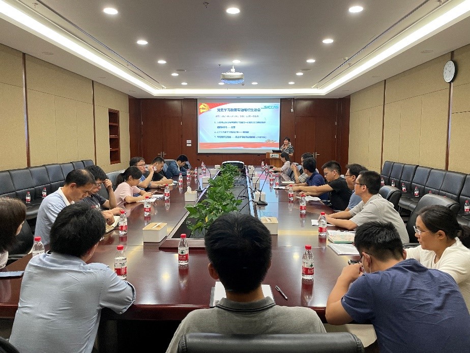 8月23日下午,中国科学院上海硅酸盐研究所结构中心党支部在嘉定园区G3(1)会议室召开党史学习教育专题组织生活会,中国工程院院士董绍明,所党委委员、综合办公室主任彭芳以及20余名党员参加会议。组织生活会由党支部书记姚秀敏主持。