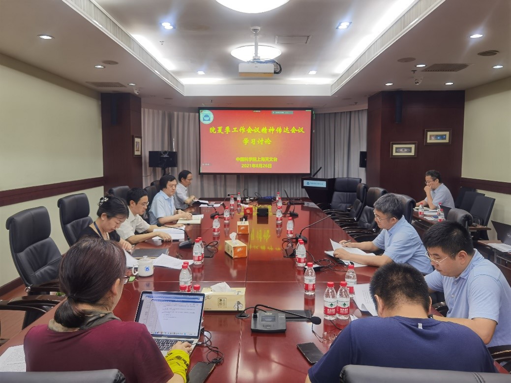 8月26日,上海天文台召开专题会议,学习贯彻院2021年夏季党组扩大会议精神传达会,上海天文台党政领导班子成员、两委委员、台务委员等共10余人参加了会议。