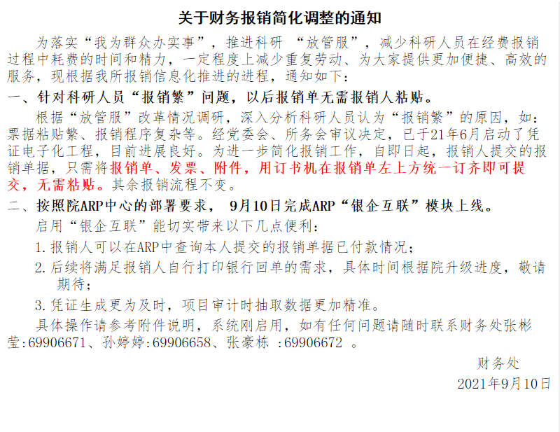 为深入推进“我为群众办实事”实践活动,进一步提升财务工作“放管服”水平,为科研人员提供更加便捷、高效的服务,中国科学院上海硅酸盐研究所深入了解科研人员需求,着重于解决科研人员报销中遇到的“急难愁盼”,如“付款结果难以查询、票据粘贴繁、审计复印凭证工作量大”等突出问题,着力破解科研经费“报销繁+烦”问题,不断提高经费管理服务水平。