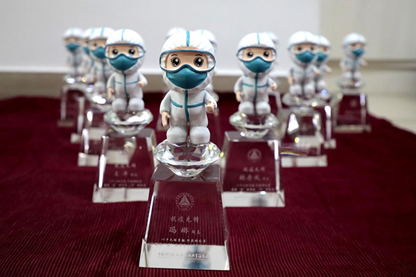 为感谢全体志愿者在有机所疫情防控中所作出的无私奉献和辛勤付出,有机所为200余名志愿者定制“抗疫先锋”、“志愿标兵”、“抗疫卫士”纪念奖杯。唐勇代表有机所党政领导班子为四位志愿者代表颁发纪念奖杯。