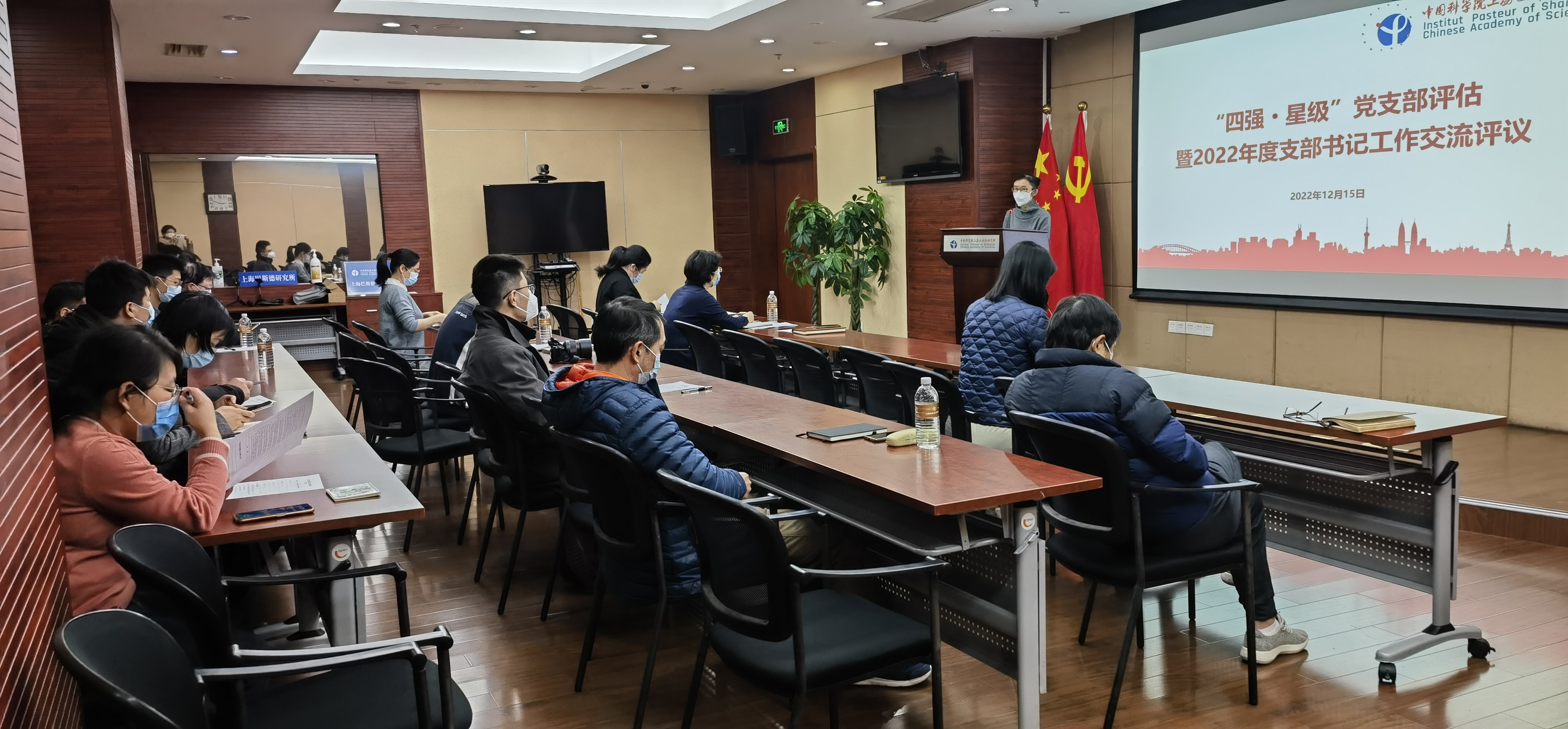 12月15日上午,中国科学院上海巴斯德研究所召开“四强·星级”党支部评估暨2022年度支部书记工作交流评议会,会议由纪委书记张帆主持,上海分院党建督导组薛芳同志到所指导,各支部委员、党员代表、民主党派人士代表、党办负责人等参加了会议。